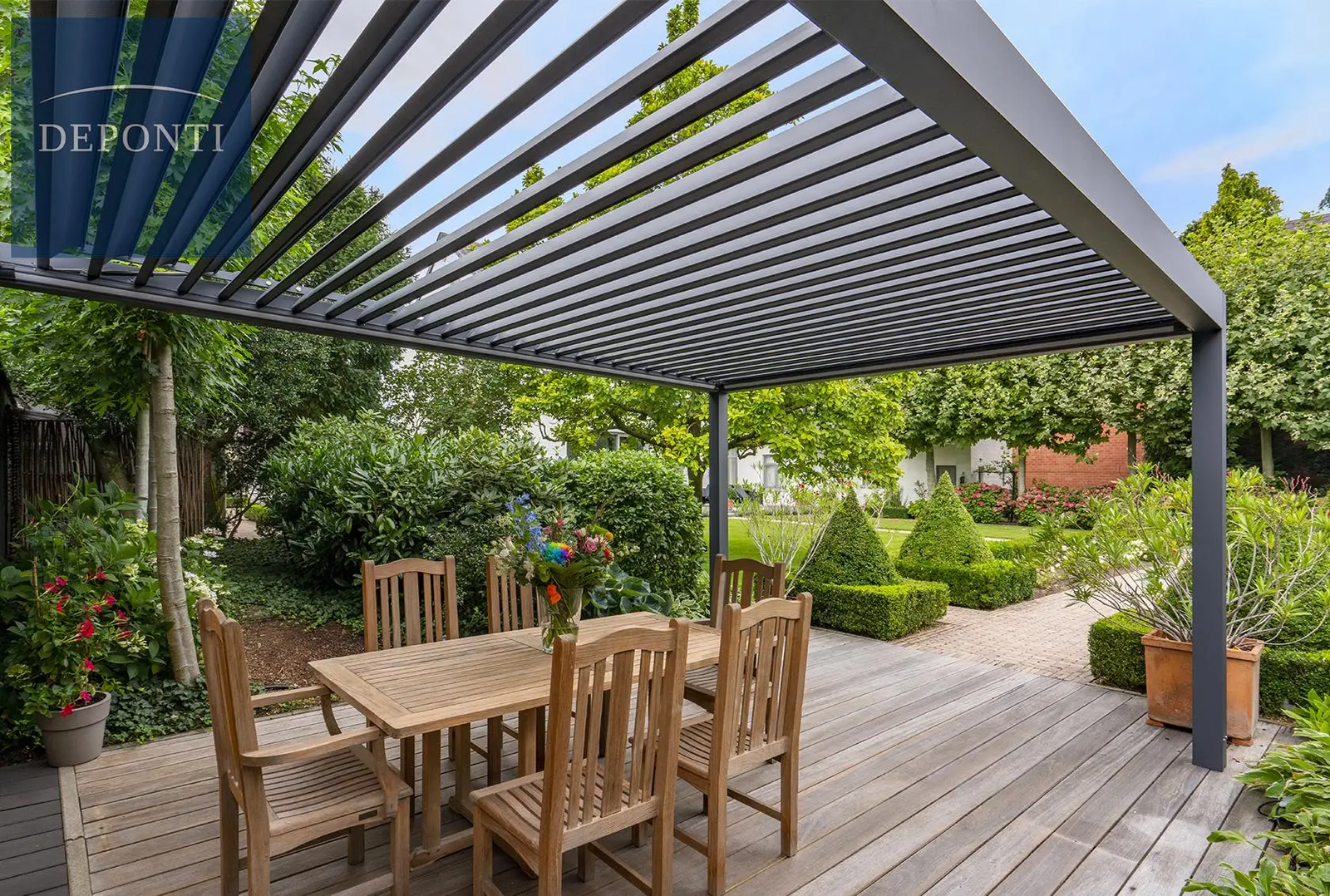 De Giallo is het perfecte fundament voor een complete tuinkamer. Dankzij het modulaire systeem van Deponti kunnen wij uw overkapping op ieder moment upgraden: